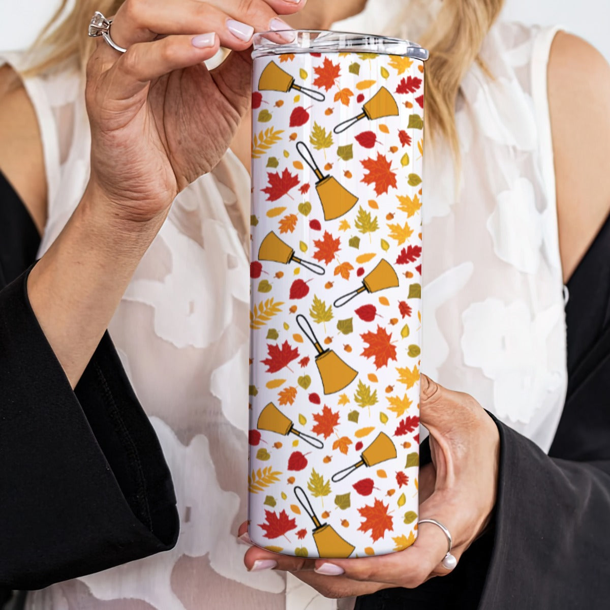 Sip in style all year round with this Handbell Falling Leaves tumbler! Crafted from premium food-grade 304 stainless steel, itβs built tough but feels sleek in your hand. The double-walled vacuum insulation keeps your coffee piping hot or your iced tea refreshingly cold for hours.