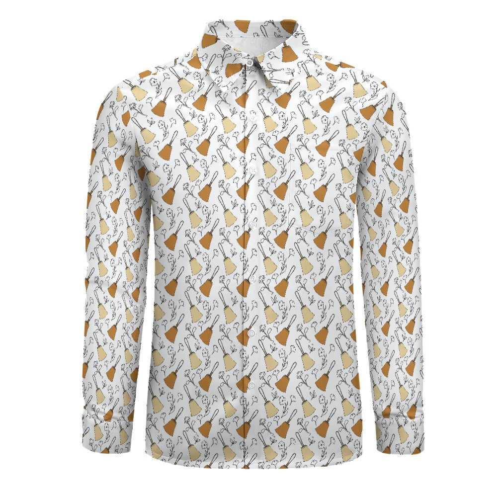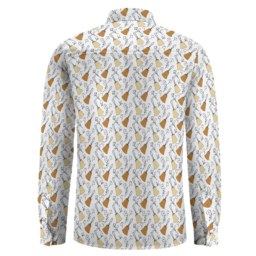 Handbell Floral Black & White Velvet Long Sleeve Shirt — One Pocket, All the Style!